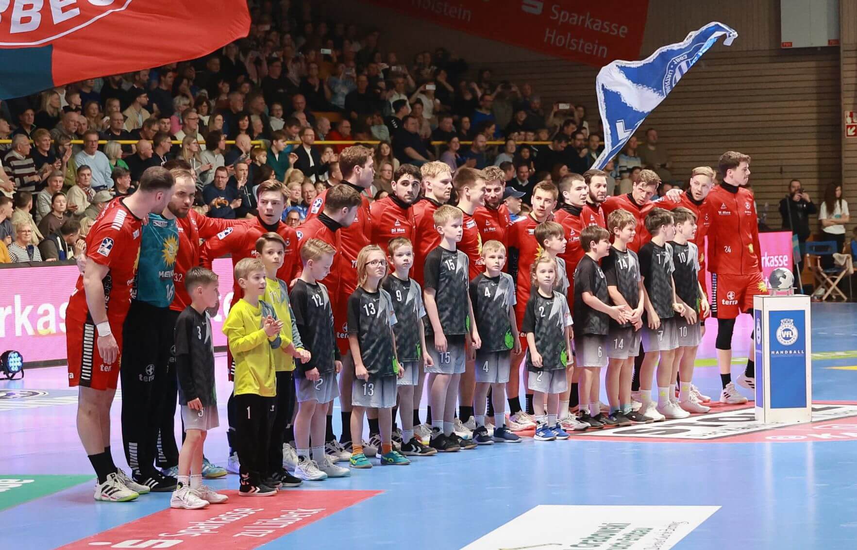 Als Einlaufkinder begleiteten unsere jungen Spieler die Profis beim Bundesliga Spiel VfL Lübeck-Schwartau gegen TUS N-Lübbecke auf das Spielfeld.